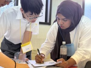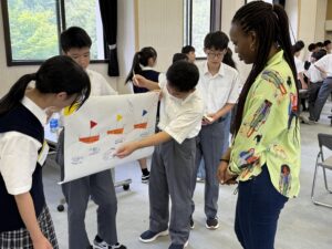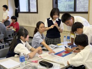 国内在住の外国人留学生が各グループリーダーとなり、英語をツールとした活動(ディスカッション、プレゼンテーション等)を行いました。緊張した面持ちはすぐに消え、英語を駆使して笑顔で活動を楽しむ姿がありました。
