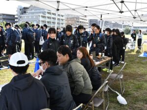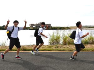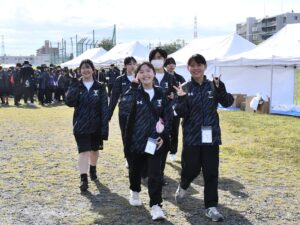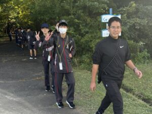 今年度も、集合・解散場所である田島臨時グラウンドから昭和水門を中心とした半径3キロメートル圏内に設定されたルート(全長15.6キロメートル)を全校生徒がそれぞれのペースで歩きました。秋ヶ瀬公園三ツ池グラウンドと彩湖・道満グリーンパークふれあい広場には救護所を設けていましたが、99.9パーセント以上の生徒が最後まで完歩することができました。