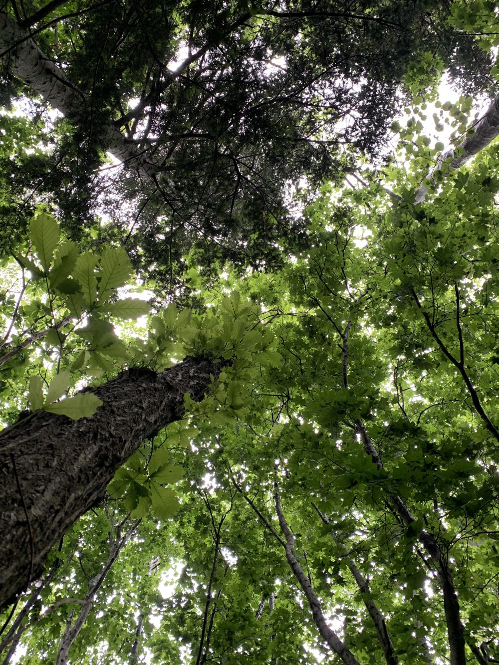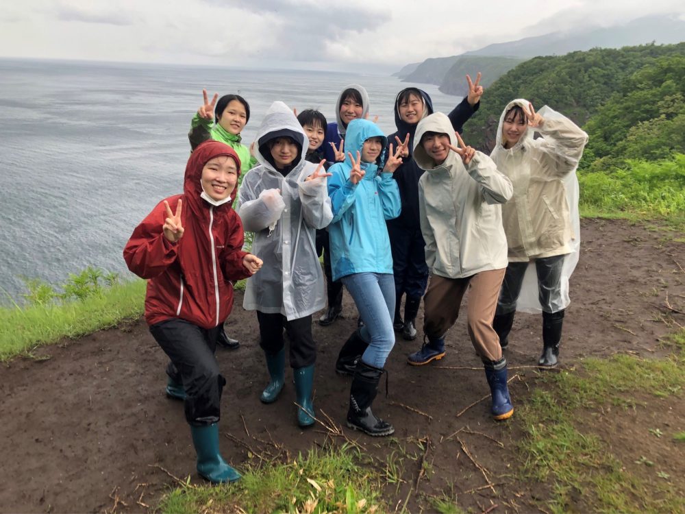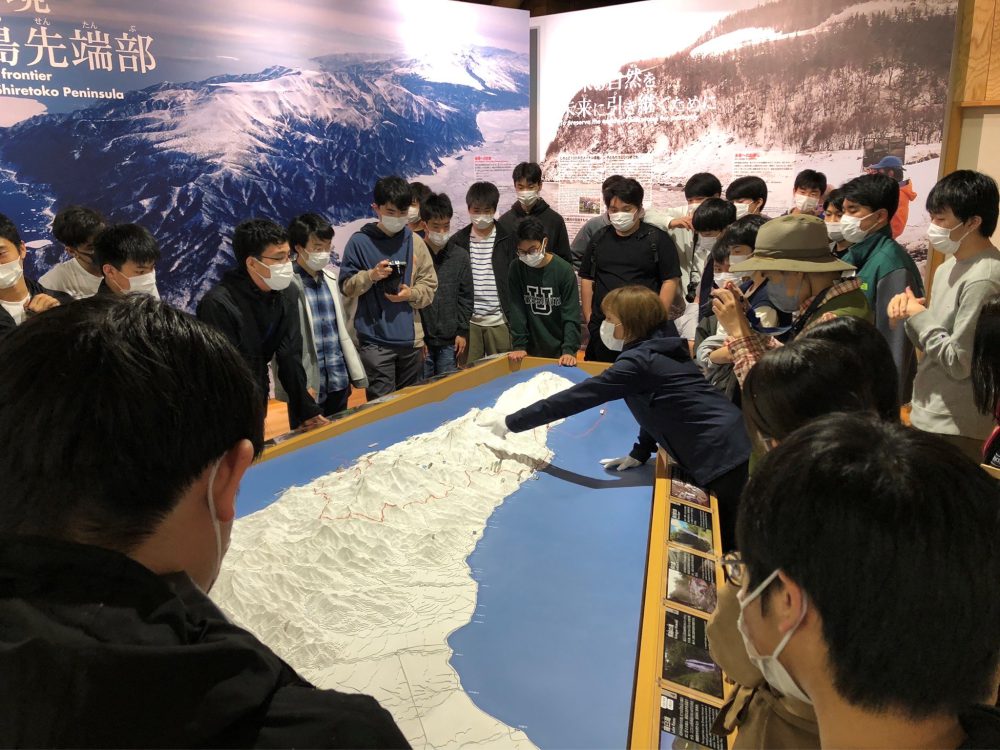 サイエンスコース2日目。午前中はオシンコシンの滝と知床世界遺産センターを訪問しました。午後はネイチャーガイドさんの引率のもと知床の原生林を散策。発達した低気圧の接近のため森林の外はかなりの暴風でしたが、森林内部は木々に守られてそれほど風も強くなく、快適に自然散策ができました。人の手が入っていない自然そのままの原生林の中には、ヒグマがつけた木の傷やエゾジカのフンなどの野生動物の活動の痕跡がたくさん見られ、また実際にエゾジカやヒグマの姿も確認することができ、貴重な体験をすることができました。