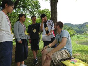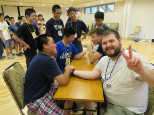 8月9日~11日に中等部2年生が、今年は山梨県にある河口湖での英語研修English Summer Campに行ってきました。アメリカの大学生に迎えられ、グループごとに英語を使った活動をしてきました。生活の中で使う英語を耳にするうちに、恥ずかしがっていた生徒も英語を使ってコミュニケーションが取れるようになり、英語での個人発表からグループでの演劇まで、人前で英語を使う度胸もつきました。中等部3年生での海外ホームステイに向けて、さらに英会話力を身に付けてほしいと思います。